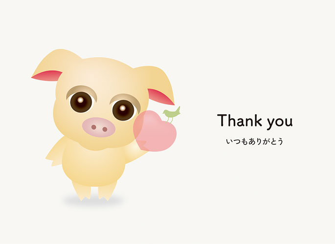 当サイトは、フリーランスで活動している福嶋真弓のポートフォリオサイトです。オリジナルキャラクターのブタさんメッセージカードもご用意しておりますので、お楽しみいただけたら幸いです。